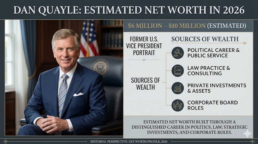 Dan Quayle net worth in 2026 is estimated at $6 million to $10 million, built through politics, law, investments, and corporate roles. Dan Quayle net worth continues to spark curiosity…